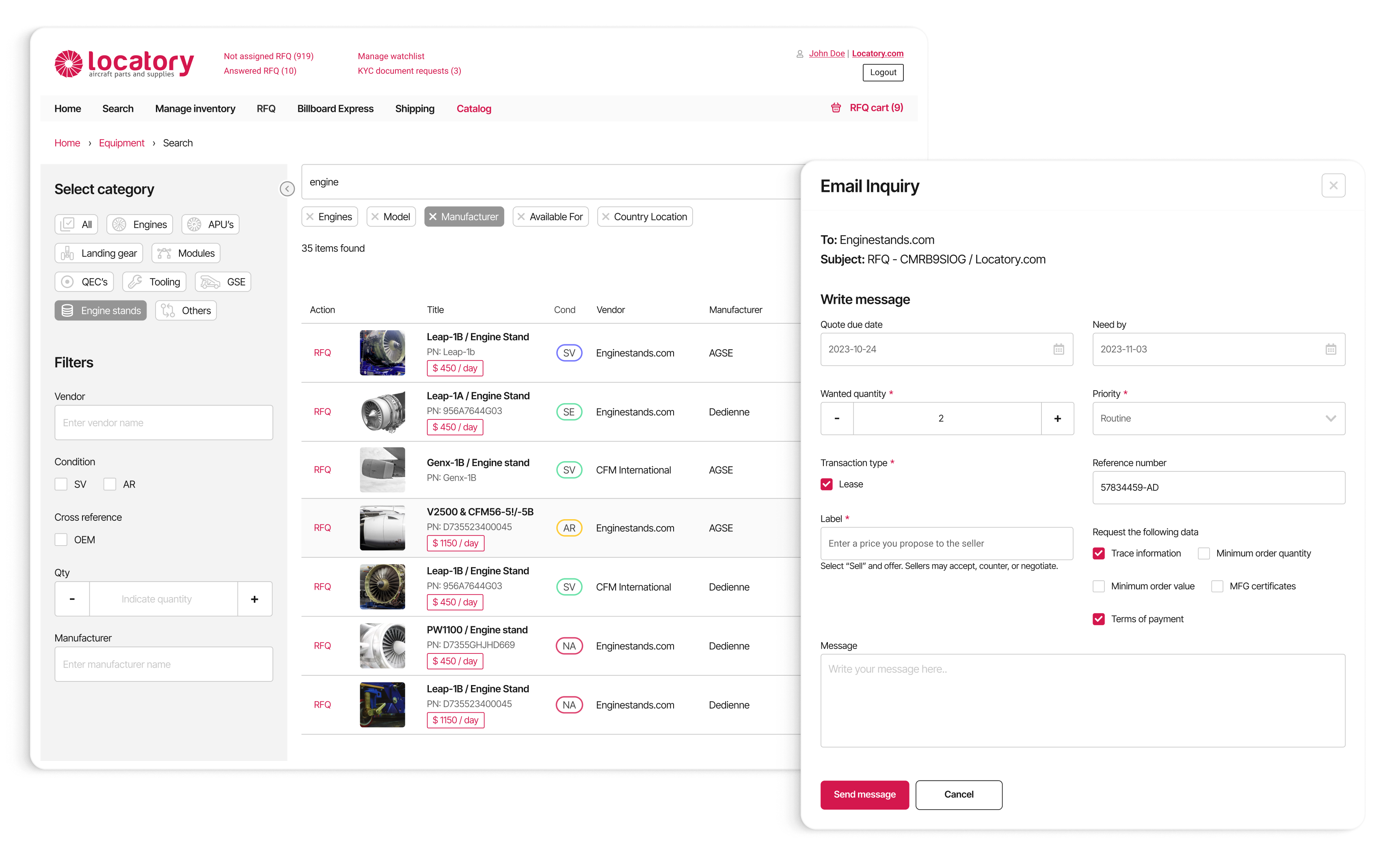 From streamlined supplier management to lightning-fast multiple part number searches, Locatory.com is your one-stop solution for all your aviation needs.